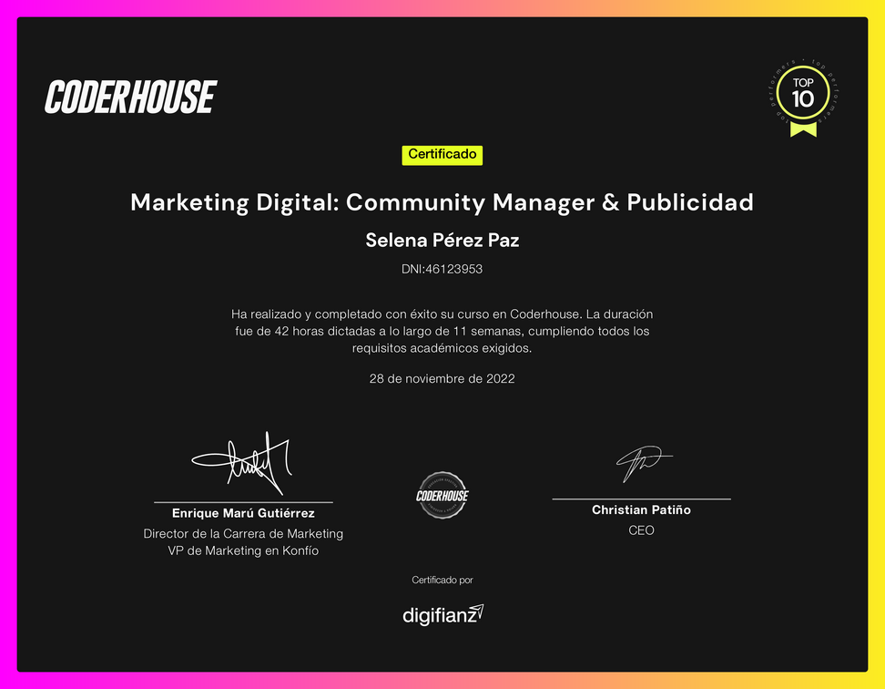 Estoy estudiando Sistemas de la infomación en la UBA, además de eso soy una Community Manager, especialista en Publicidad y creadora de contenido. En proceso de terminar mi formación como Diseñadora UX/UI y Tester QA. Busco destacar marcas de manera única y memorable. Con experiencia en diversas industrias, estoy lista para colaborar en proyectos emocionantes y seguir creando impacto en el mundo digital.